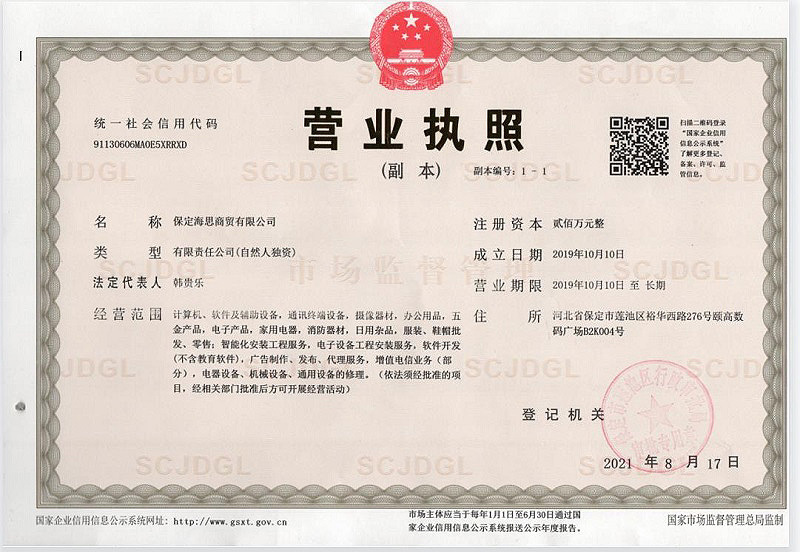 保定海思商贸有限公司 经营 办公设备,办公用品,办公耗材以及从事智能化安装工程服务,电子设备工程安装服务多年,一直为事业单位,政府,医院,学校以及企业提供优良的产品和服务。本公司经营范围包括:办公设备、电脑,文体用品、家用电器、复印机、打印机、数码一体机、传真机、网络设备、电子产品、节能环保产品、测量仪器、通讯终端设备、机电设备、摄影器材、音响设备、文具用品、建筑材料、小礼品、五金产品、仪器仪表、计算机、软件及辅助设备、耗材、塑料制品、橡胶制品、乐器、体育用品、家具、灯具、装饰物品、实验室设备、医疗器械,教学仪器、美术用品批发、零售,综合布线;计算机软件及辅助设备,通讯终端设备,办公用品,五金产品,电子产品,消防器材,日用杂品,服装、鞋帽批发、零售;等等。欢迎新老客户的光顾,我们将竭诚为您服务!